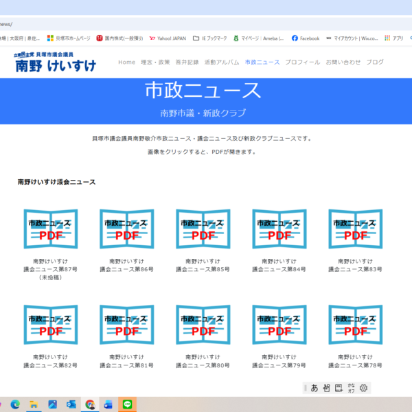 私のホームページが更新されました。 市政ニュースのコーナーに、駅でお配りしたり、ポスティングをしてい...