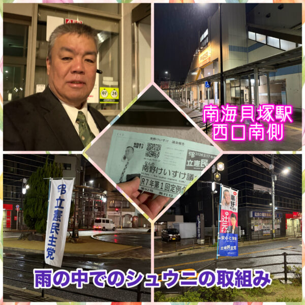 福祉が充実したしたまちをめざす貝塚市議会議員の南野けいすけです。 3月31日。年度末のシュウニの取組...