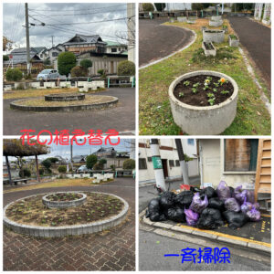 地元にあるフラワー公園の花の植え替え作業と町内一斉掃除。