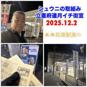 今日は立憲府連の議員団の統一行動の「月イチ街宣」も合わせて取組みました。