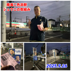 今朝(9月26日)は、シュウニので取り組みを南海二色浜駅で行いました。