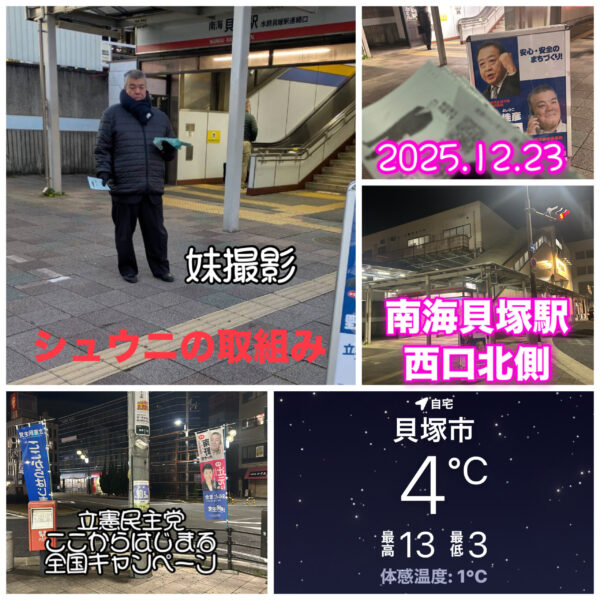 2025.12.25 南海貝塚駅西口南側で議会報告ニュースNo.89をお配りしました。