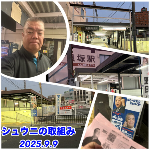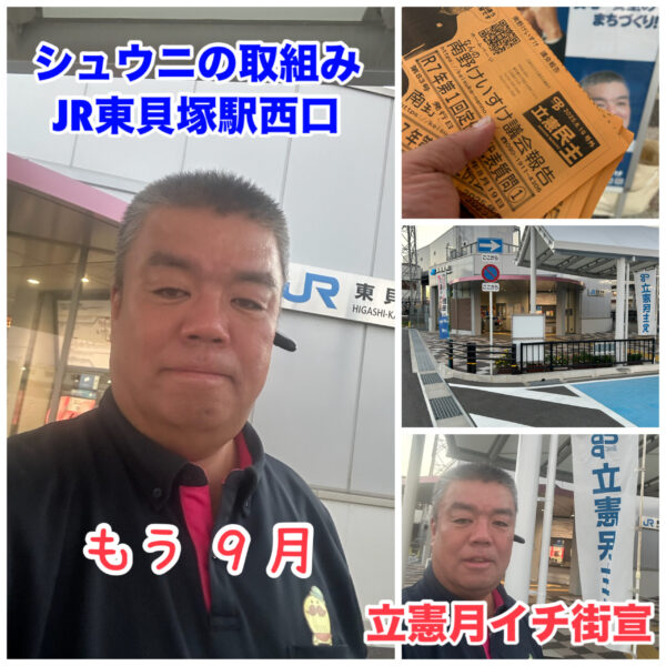 ヘイトスピーチを許さない貝塚市議会議員の南野けいすけです。 9月1日は、シュウニの取組みからスタート。 JR東貝塚駅西口にて取り組みました。 今日は、立憲府連の統一行動の月イチ街宣も合わせておこないました。 早いですねぇ […]