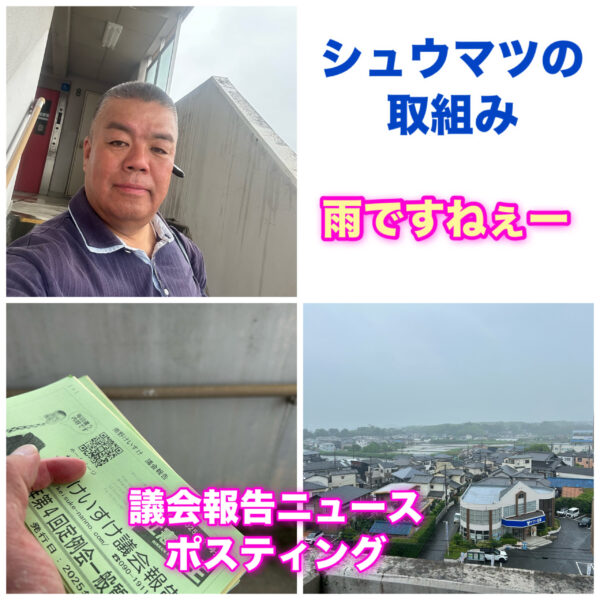 誰もが安心して暮らせる貝塚をめざす貝塚市議会議員の南野けいすけです。 6月14日は、シュウマツの取組みからスタートです。 議会報告ニュースのポスティングです。 雨が降っていたので団地で取組みました。 時々すれ違う方々から […]