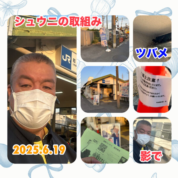 平和を大切にする貝塚市議会議員の南野けいすけです。 今朝(6月19日)は、シュウニので取組みJR和泉橋本駅で行いました。 ツバメの雛も育ってるようです。 嬉しい気持ちになりますね。 この場所は陽が登ると暑いので、人の動き […]