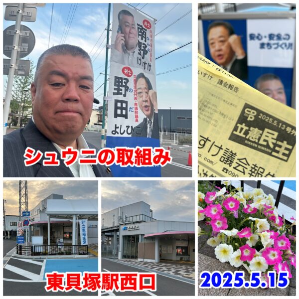 誰もが安心して働ける環境づくりをめざす貝塚市議会議員の南野けいすけです。 5月15日はシュウニの取組みからスタートです。 JR東貝塚駅西口で行いました。 本来なら東口で行う順番なのですが、谷口議員が東口に立つというので変 […]