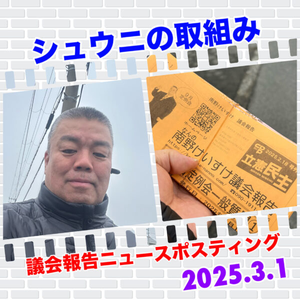 ジェンダー平等をめざす貝塚市議会議員の南野けいすけです。 今朝(3月1日)は、シュウマツの取組みからスタートしました。 3月初の取組みです。しかし時が経つのが早いですねー😄 今日も今日とても議会報告ニュースのポスティング […]