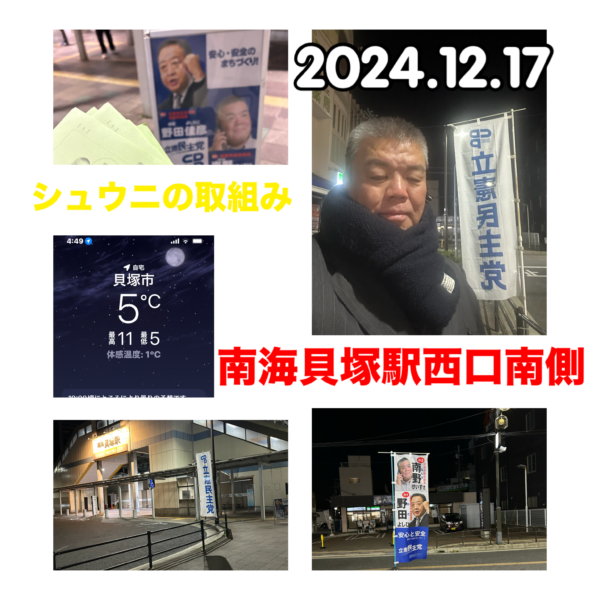 2024.12.27 南海貝塚駅西口南側で議会報告ニュースをお配りしました
