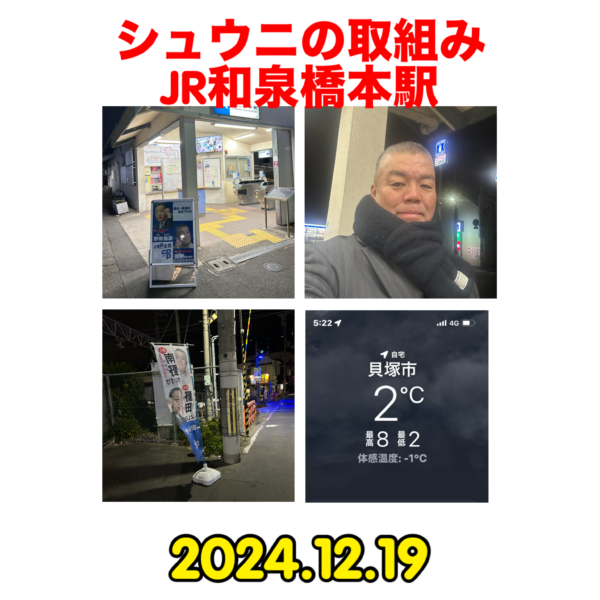 今朝(12月19日)は、シュウニの取組みからスタート JR和泉橋本駅で取組みました。 この冬1番の冷え込みでした。 途中から小雨も降って来て😓 そんな中でも議会報告ニュースを受け取っていただけるのは本当に嬉しい限り😃 励 […]