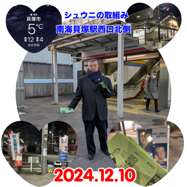 2024.12.12 南海二色浜駅で議会報告ニュースをお配りしました