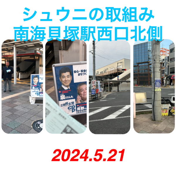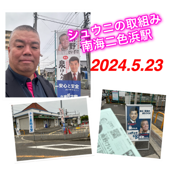 今朝は南海二色浜駅でシュウニの取組みからスタートしました。 どんよりした曇り空ですが気持ちよく取組めました。 「まだ議長してるんですか?」とか「議長お疲れ様でした」とか色々お声かけいただけ嬉しく思いました。 今日も元気に […]